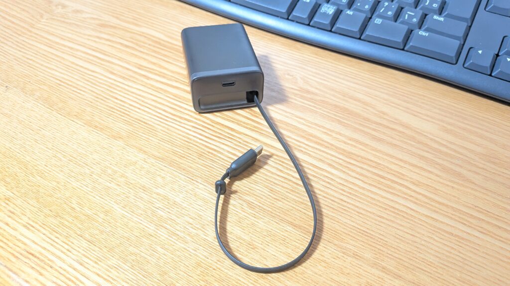 最大の特徴は、約70cmの巻取り式USB‑Cケーブルを内蔵していること。